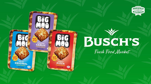 Moo‑velous news! The Big Moo has officially hit the shelves at Busch’s Fresh Food Market locations across Michigan! Cheese lovers can now enjoy our award‑winning baked cheese in flavors like Oh‑So Original, Roasted Garlic, and Cheesy Pizza.