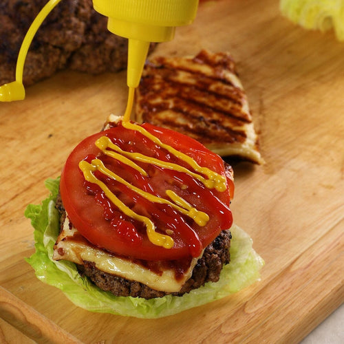 - Top your burger with another iceberg lettuce leaf to act as the second half of the bun.